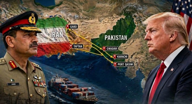 Asim Munir’s move raises questions as Pakistan opens land routes to Iran amid Trump's Hormuz blockade. Photo: AI composition by ChatGPT