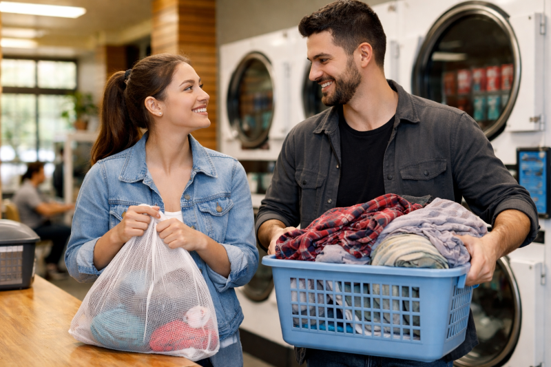 Representational photo of ‘Choremance’ at a laundromat. Photo: ChatGPT