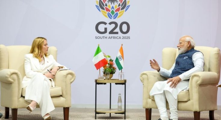 IBNS-CMEDIA: PM Narendra Modi met his Italian counterpart Giorgia Meloni in South Africa on Sunday on the sidelines of the G20 Summit, when they adopted the ‘India-Italy Joint Initiative to Counter Financing of Terrorism’.