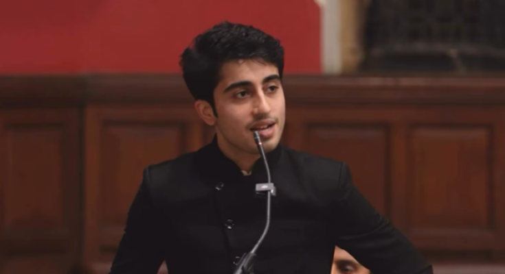 Viraansh Bhanushali during a debate at Oxford Union. Photo: Screen-grab