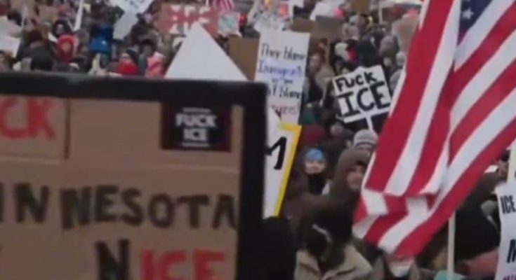 Protesters, many carrying handmade signs reading “De-ICE Minnesota” and “ICE melts in Minnesota,” marched through culturally diverse neighborhoods despite sub-freezing temperatures and light snowfall.