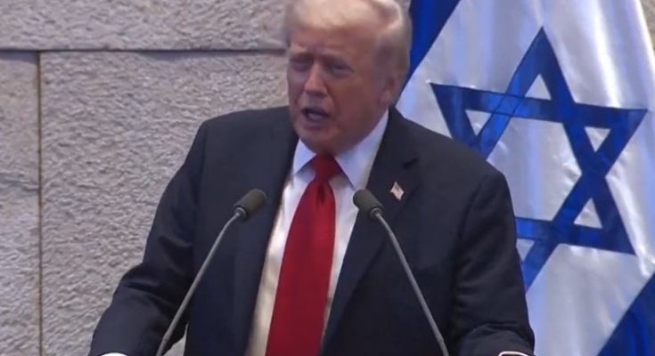 “This is not only the end of a war,” Trump said to standing ovations from Israeli lawmakers. “Today, the skies are calm, the guns are silent, and the sun rises on a holy land that is finally at peace.”
