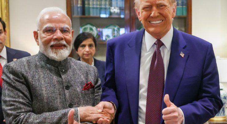 PM Narendra Modi meets US President Donald Trump at White House in Washington, DC, on February 13, 2025. Photo: Wikimedia Commons/PMO India